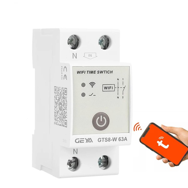 GEYA Intelligent Wifi Time Relay Switch Smart Home Wireless Remote Control Switch by Tuya APP AC220V DIN Rail Type (2P-63A)
