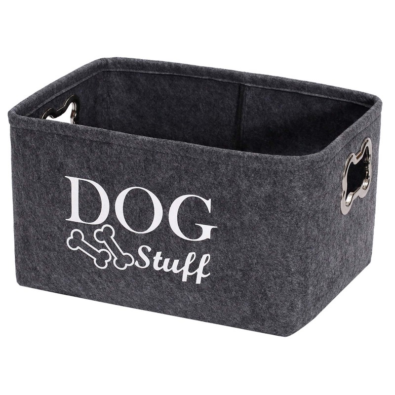 **Safe and Eco-friendly:** The storage basket is made of Soft felt material ,which is 100% handmade craft ,no crack design will no harm to kids.Besides, it’s a recyclable material which is environment-friendly. **The Basket is Perfect for Storage KidsToys,Dipers,Blankets,Towels,DVD,Books,Magazines,Gifts,Socks,Pet Toys. **This Bin work great for organizing closets, Living Room,Bedroom,toys room, bathroom, Nursery Room and Apartment. **Exquisite Design Looks More Substantial:** Simple and good looking storage bins fit varied style of domestic decoration, not only practical, but also as beautiful as artwork, make your home feel fresh and new. **Easy to Use and Storage:** The organizer is lightweight and soft yet sturdy enough to stand up on their own.It is able to hold ton of stuffs and can last a long time.It is special with Designed Metal Bone-shaped Handle.** **Trendy Pet Storage** **Keep your pet organized, while being stylish at the same time.** **MEASUREMENTS: Measures 38*27*25 CM (14.9*10.6*9.8 Inch)(Approximate), the storage basket stands upright and the convenient handles make it easy to transport or move when needed. MATERIAL & CARE: Felt, durable and long-lasting use. Wipe clean with a damp cloth.** **ORGANIZATION for pets at its best! Perfect for holding dry dog treats, leashes, collars, toys, blankets, outfits, grooming supplies and more!** **