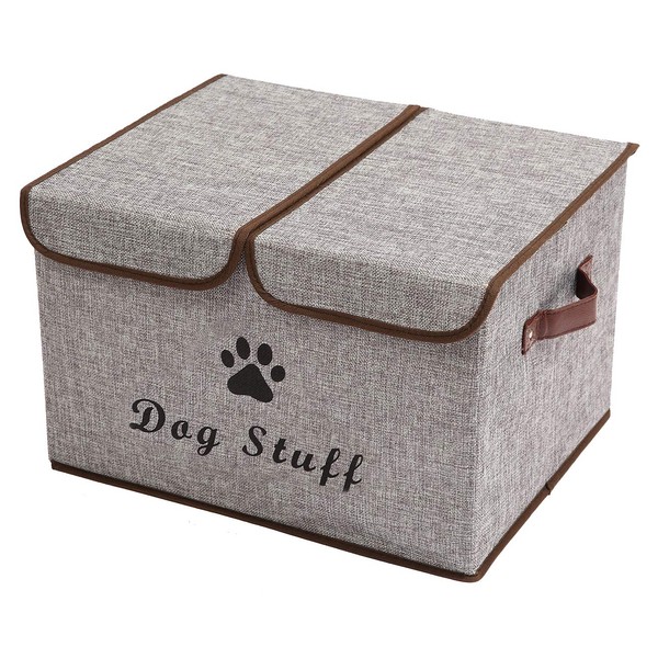 - 4. DOUBLE-SIDED - Front side is Printed with "Dog Stuff", back side has no writing. the storage basket stands upright and the convenient handles make it easy to transport or move when needed.