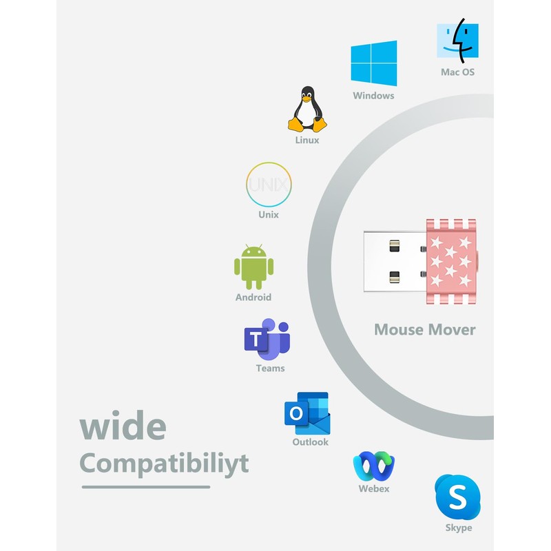 The mouse jiggler compatible with Windows/Chrome OS/Linux, Mac OS, Linux System, Android,etc,Works with any type mouses at the same time.