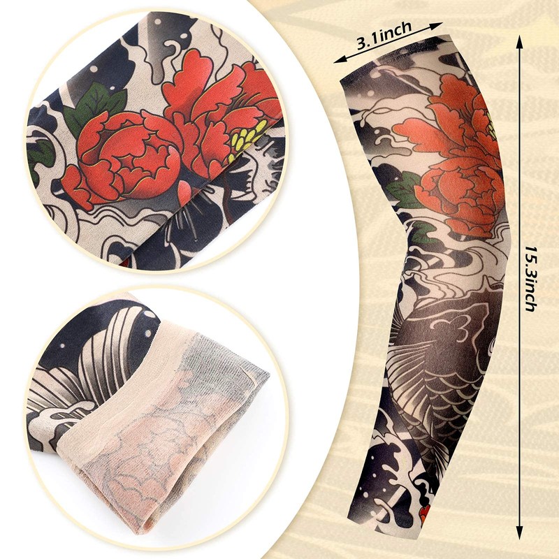- Package content: 12 different designs of tattoo sleeves, as shown in picture. 1 unit per design and individually packed in bag