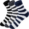 Geyoga 3 Pairs Men Cosy Bed Socks Fluffy Home Socks Elastic Winter Fuzzy Socks Comfy Warm Soft Fleece Socks(Black and White Stripes,L)