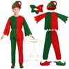 Geyoga 9 Pcs Kids Christmas Elf Costumes Cute Red Green Xmas Elf Outfits With Hat Shoes for Boys Girls Cosplay(Medium)