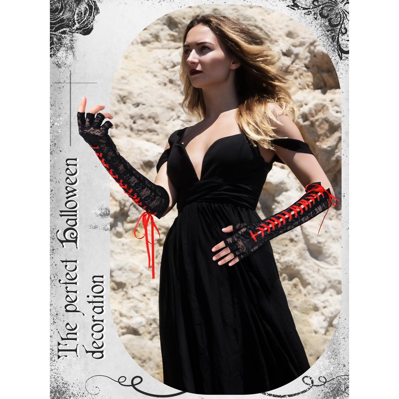 - Black Fingerless Gloves for Women: The long fingerless gloves with lace design and fine workmanship, smooth and comfortable, satin ribbon design that looks very elegant and exquisite. Elbow length fingerless gloves that go well with the costume dress and evening dress, etc