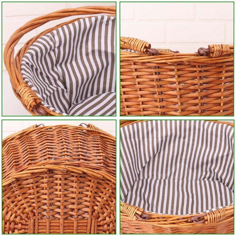 - 【Grey Lining】 The beautiful Grey lining adds an aesthetic touch to the wicker Picnic basket, making it an elegant addition to your picnics or household.
