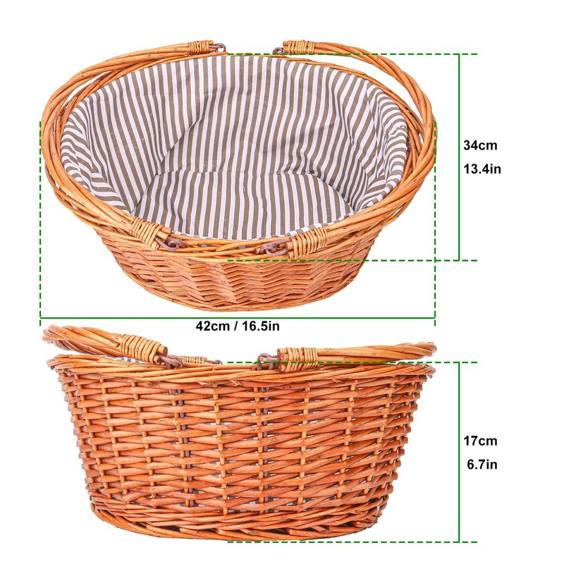 Geytetqi Large Wicker Picnic Basket with Double Folding Handles and Grey Lining, Wicker Basket, Large Willow Hamper, Handwoven Basket for Storage, Picnic, Camping