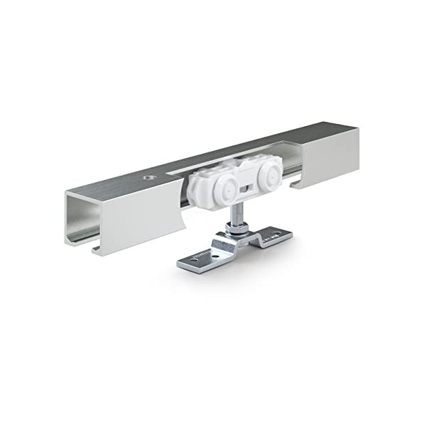 - Sliding fitting for wood, plastic or metal doors with 40 / 80 kg wing weight. With one- or two-sided damping for doors up to 40 kg wing weight, so that the door is gently braked and pulled independently into the end position, uniform track for Rollan 40 and 80 allows easy adaptation to changing usage conditions, smooth-running roller trolleys with little effort. in movmove, Easy to adjust the distance.