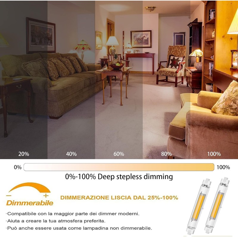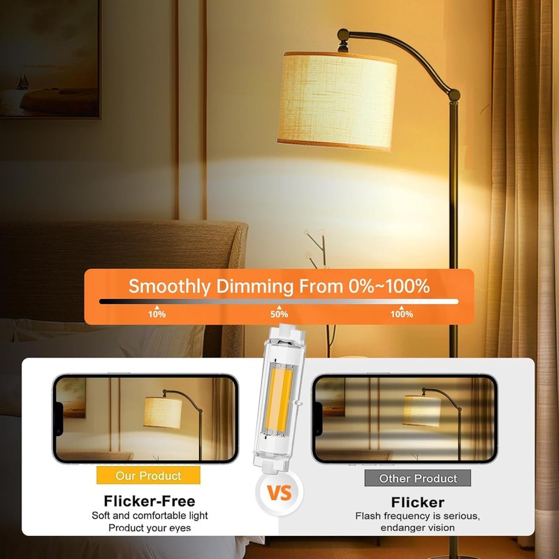 - ??Augenschutz Dimmbar R7S Leuchtmittel:R7S LED 78mm, die Lichthelligkeit ber Dimmer einstellen kann. Kein Flackern, schtzen Sie Ihre Augen und kmmern Sie sich um Ihre Familie. (Dimmbare 20%-100%),Hinweis: Wenn der Dimmer nicht kompatibel ist, wird er beim Dimmen flackern.