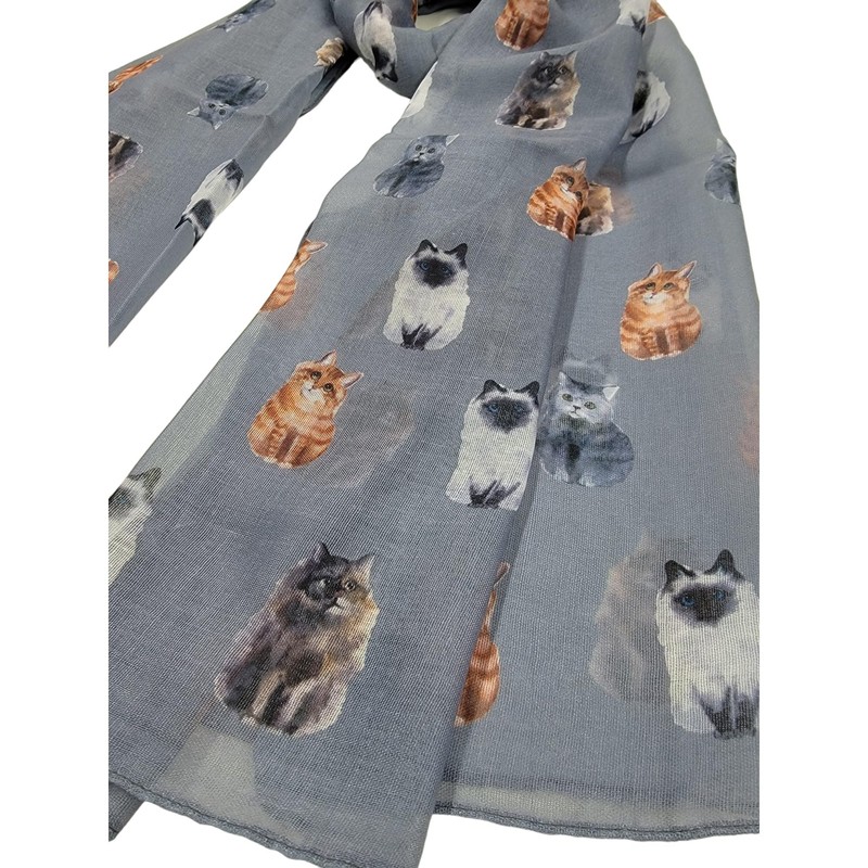 GFM Cat Print Scarf CT-036-BH-Grey, 42, CT-036-BH-Grey