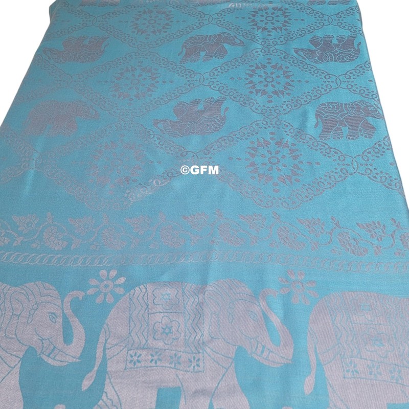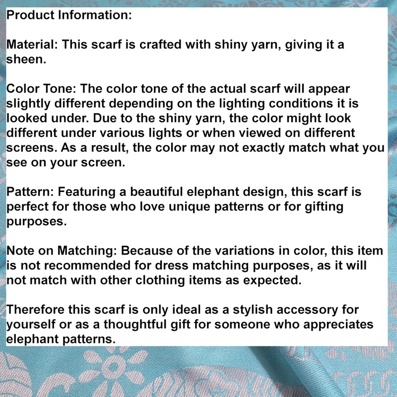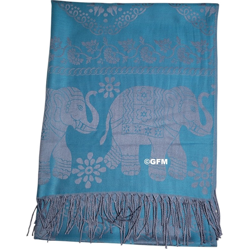 - GFM-Pashmina-style Scarf in Elephant Design. The pattern is woven, not printed, ensures a high level of quality and durability, allowing the intricate design to remain vibrant over time.