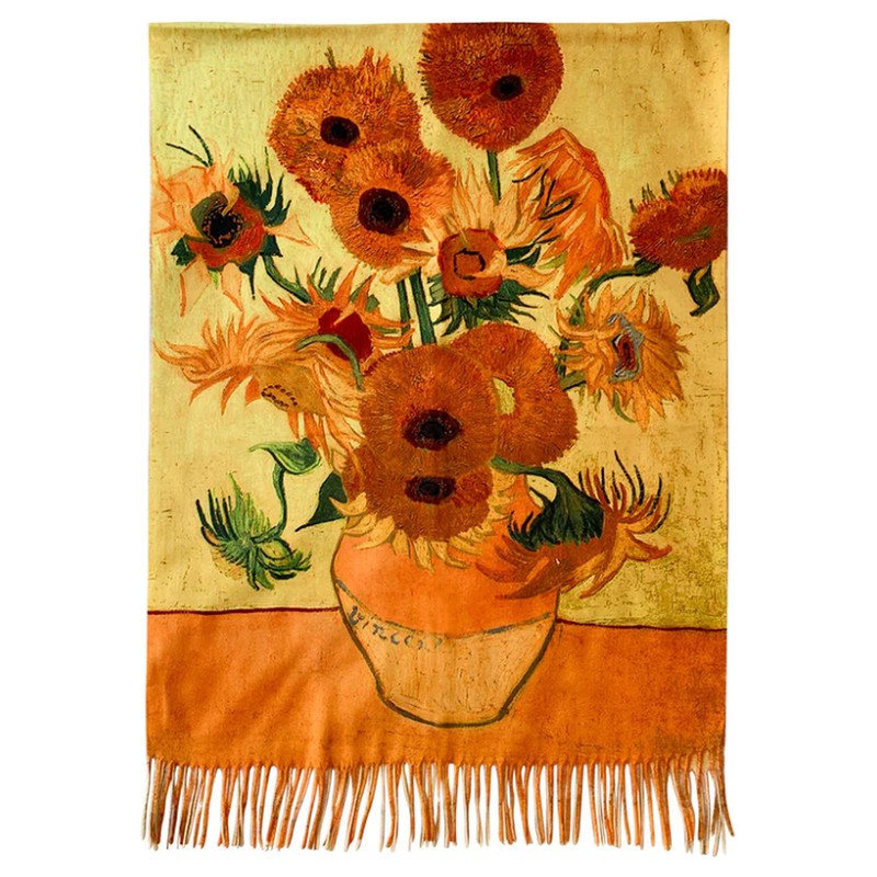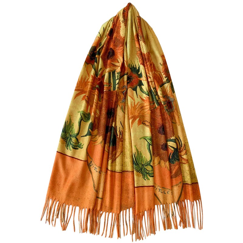 GFM® Wool Blend Cashmere Texture Painting Art Based Print Shawl Scarf for Autumn Winter Mother's Day Birthday Christmas - Van Gogh Sunflowers (PWSHL-FS-3683-A)