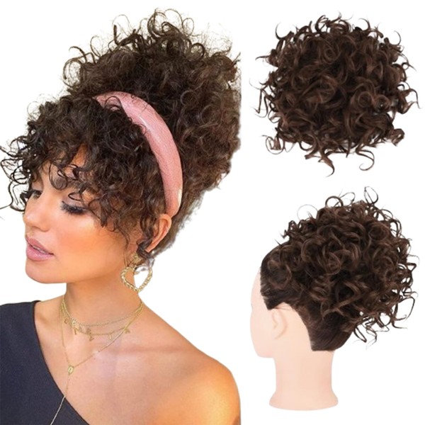 GFun お団子 ウィッグ 大きい ゴム コーム付き 和装 結婚式 コスプレ 七五三 成人式 結納 チャイナ 部分ウィッグ ダークブラウン