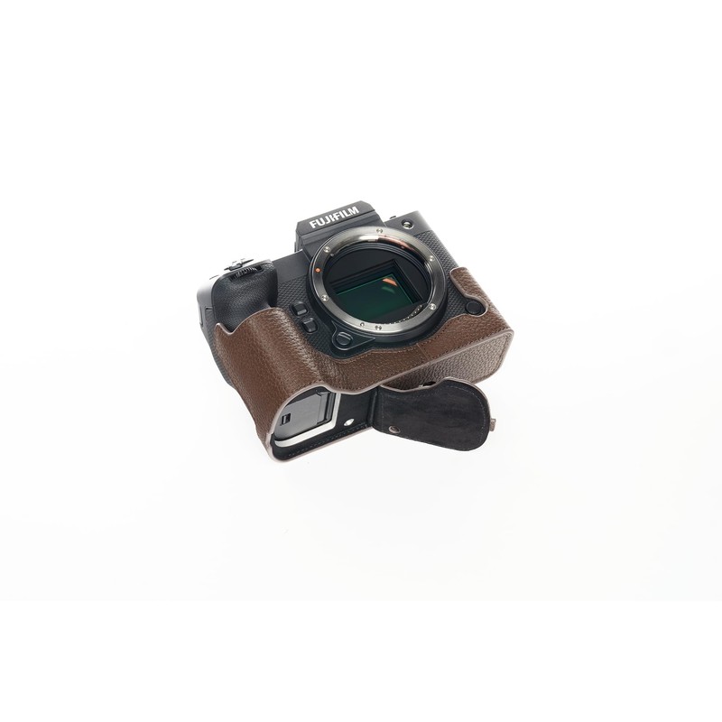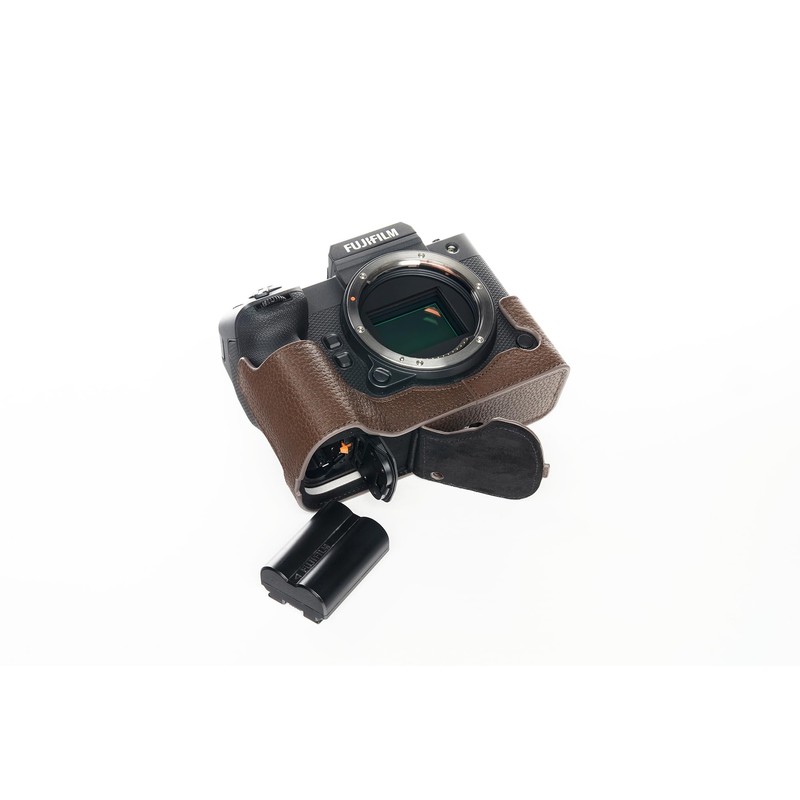 GFX 100II Camera Case, BMAOLLONGB Handmade Genuine Real Leather Half Camera Case Bag Cover for Fujifilm GFX 100 II Camera Bottom Opening Version + Hand Strap (Coffee)