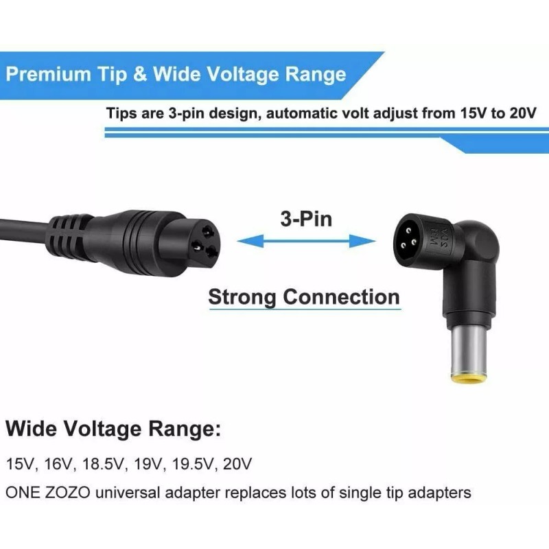 About this itemLaptop charger 90W universal Compatible for most laptops Chromebooks Ultrabook's. Plug and play, Easy to use with automatic voltage adjustment. You can power your different brand laptops with just one laptop power cord. 【Please do not charge laptops over 90W[Wide output voltage, 15v-20v] - Input Voltage: worldwide 100-240V, 50 - 60Hz. Output voltage: DC 15V, 16V, 18. 5V, 19V, 19. 5V, 20V, max 90W, compatible Laptop power adapter 75W 70W 65W 45W 40W 33W. Each brand laptop has several different kinds of tips for different models. If you are not sure your laptop tip size, Please send your laptop brand and model number to us before buying, We will give Suggestions. Any problems, Please contact us before returnCOMPATIBLE: Asus ZenBook UX21E and UX31E Series, ChromeBook C200 C200MA C300 C300MA, X551MA, X555LA , X553M, F555LA-AB31, T300LA, F553M, C202SA-YS02, VivoBook F510UA F510UA-AH51, K501UX, ZenBook UX330UA-AH54 UX330UA-AH55 ; HP Stream 11 13 14, X360, 14-ax010nr 14-ax040nr 14-ax020nr 11-y010nr 11-y020nr 14-ak040nr 14-ax050nr, Chromebook 14 11 G3 G4 G5, ENVY Touch Smart Sleekbook M6, M7, 15-j, 17-j, DV14/15/2000/4000/5000/6000/8000, Dv4 Dv6 Dv7, Dm4 G6 G7, 2000; Sony VAIO VGP-AC19V39 VGP-AC19V47 etc.ACER Chromebook 11 13 14 15 C720, C720P R11 C740 Cb3 Cb5, Aspire P3 S5 S7; Acer Aspire E 15 E5-575G-57D4 E5-575-33BM A114-31-C4HH, CB3-131-C3SZ, CB3-131-C8GZ, 14 CB3-431-C5FM cb3-532 15 CB5-571-C09S; TOSHIBA Chromebook 2 Cb35 CB30, Satellite C55-C5241, P755 P775 P870 S855 S875 U305 U505; SAMSUNG NP530U4BL GS6/GT6/7/8, X05 Series, VM GT NT; DELL Inspiron 11Z-1121 1320 13Z-5323 14-3420 14Z-5423 15R-5520 15R-5537, 14R 17R, N5010 N7110, Studio 15 17; LENOVO ThinkPad Z60 T410 SL400 SL510; GATEWAY NV55CPackage include: 1 x 90W laptop power adapter, 1 x AC power Cord, 1 set x tips