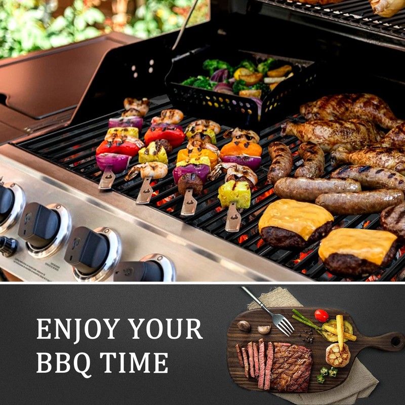 - 【Diemnsions】: 18" x 6 1/2" for one smaller piece, 18 x 9.3" for two larger pieces, 18" x 25" for total.3 PCS cooking grates