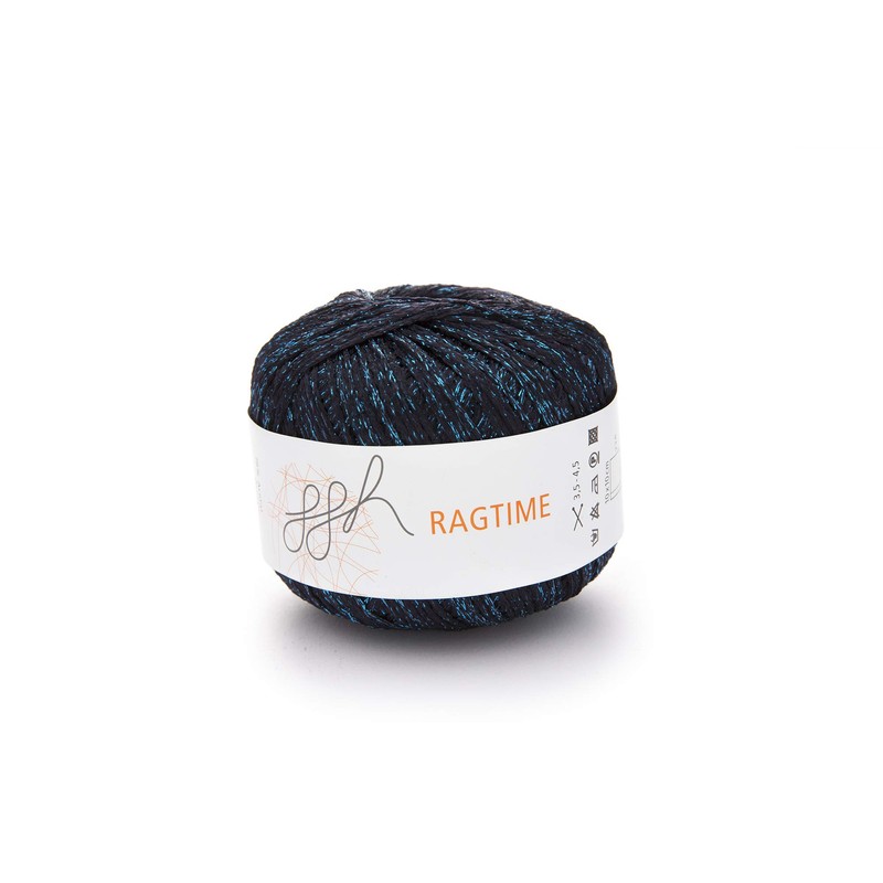 ggh Ragtime Plastic Blend Yarn Length Approx. 150 m to 50 g Needle Size 3.5-4.5 Wool for Knitting and Crocheting Colour 003 - Black/Blue