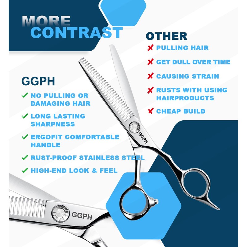 GGPH Professional Hair Cutting Scissors - SUS 440C & Cobalt Stainless Steel B...