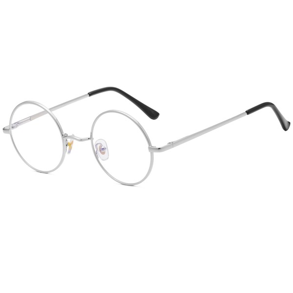 Ggpyyon Blaulichtfilter Brille Damen Herren Retro Runde Brille Blue Light Blocking Glasses Ohne Stärke Blockieren Blaulicht Brille Computerbrille(Silber)