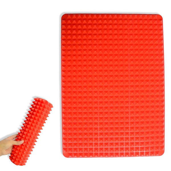 - Einfache Reinigung und Aufbewahrung: Die glatte, nicht klebende Oberfläche lässt sich leicht abwaschen und ist spülmaschinenfest. Die weiche, faltbare Matte nimmt wenig Platz ein und ist praktisch für den Transport im Freien und die Aufbewahrung in der Küche. Das vereinfacht die Reinigung und Sortierung nach dem Grillen.