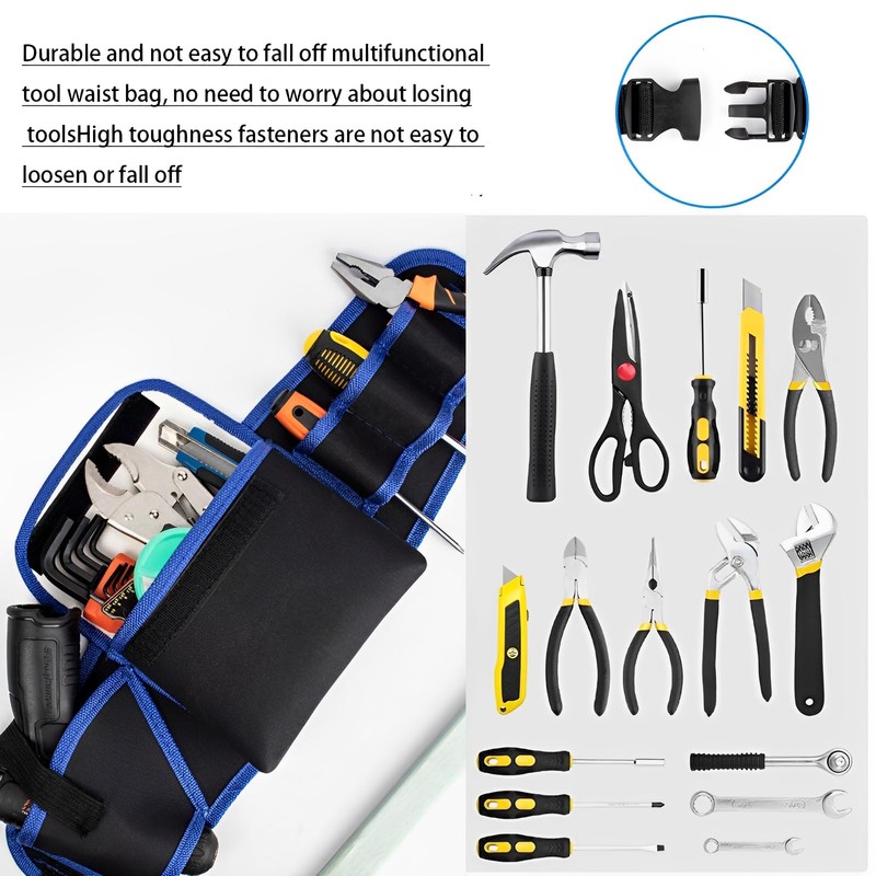 GGUFAY Tool Bags Waist Bag, Tool Bag Belt, Multiple Electricians Tool Oxford Cloth Belt Bag Canvas Hardware Tool Waist Kit
