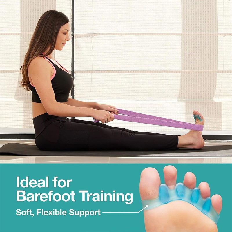 • Weiches und bequemes Material: Das Silikonmaterial ist weich und elastisch und bietet eine sanfte Unterstützung während des Barfußtrainings, ohne die Füße einzuklemmen, und ist lange Zeit bequem zu tragen.