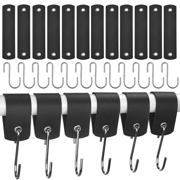 - ✔Package contents: 12 pieces black S hooks with leather ring, cost-effective combination, classic colour that matches different home styles, the hanging design saves storage space at the same time. It is the best for your family and friends.