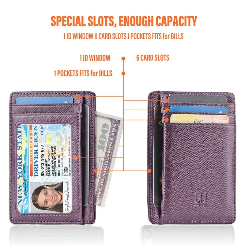 GH GOLD HORSE Slim RFID Blocking Card Holder Minimalist Leather Front Pocket Wallet for Women, Cross Purple, Slim, Minimalist Slim Female Wallet With Card Slots Holder