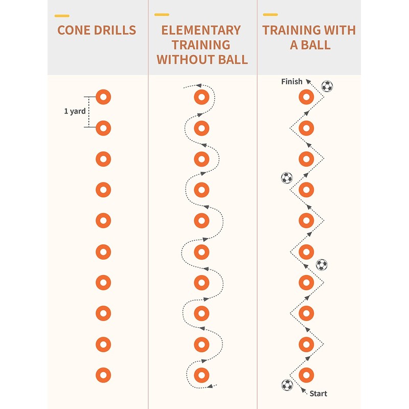 - (WIth 10 Cones and 4 Stakes)The speed agility ladder is equipped wiht 10 cones, which can be used to mark out training areas, warm up drills, shuttle and slalom based exercises. With the 4 stakes, you can secure the speed agility ladder to the ground firmly.