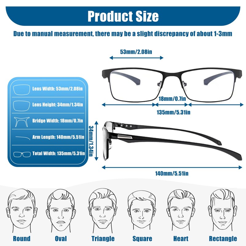 • DURABLE METAL FULL-FRAME PROGRESSIVE SUNGLASSES ARE UNBREAKABLE AND WELL-RESISTANT TO SCRATCHES AND IMPACTS. Non-slip TR90 temples keep a stable fit and won't come off easily. The photochromic glasses for men's lens is clear and transparent, without any line blocking, or deformation. Progressive readers for men's metal hinges ensure a comfortable fit for all face shapes. The soft silicone nose pads fit snugly over the bridge of the nose for long-time wearing comfort