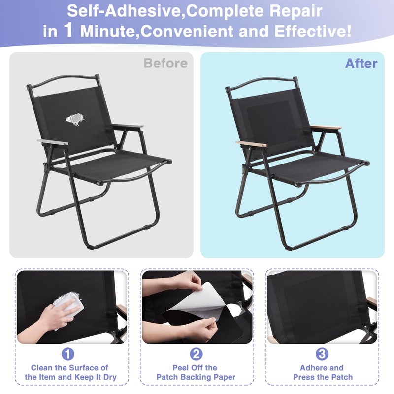- REPAIR ALL KINDS OF OUTDOOR GEAR IN 30 SECONDS: No sewing or ironing required, just remove the liner, stick it on the torn surface and apply pressure. Fast and efficient, can be the best choice for emergency repair of outdoor equipment