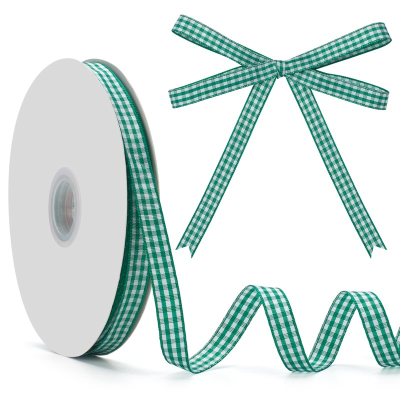 - Size: Green and white gingham ribbon Width: 3/8 inch, Length: 50 yards. Ideal size of ribbon for gift wrapping, crafts and various other project decorations