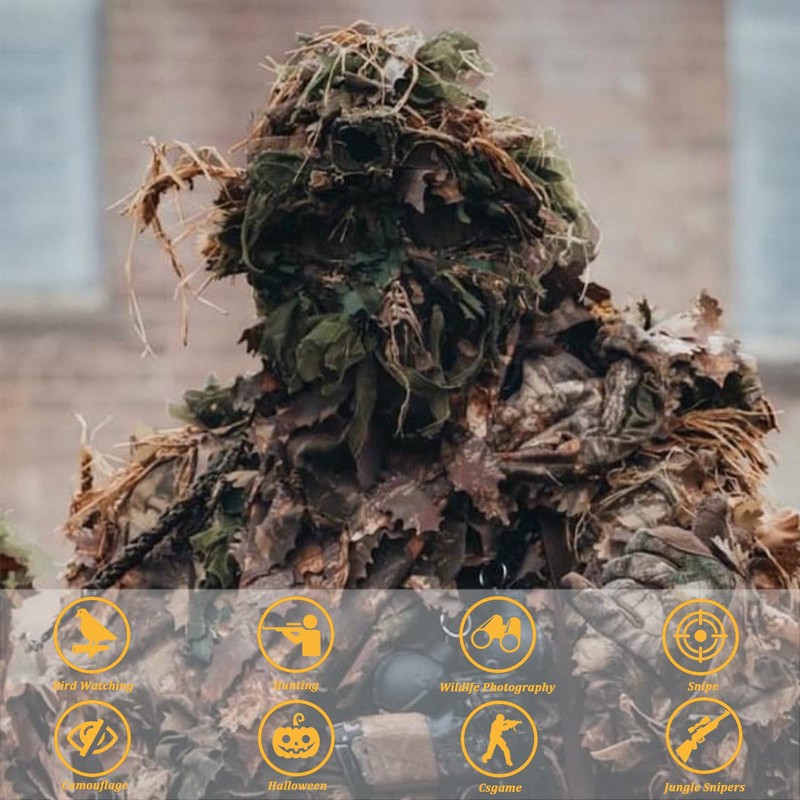 - 🕸【Wildly Applied】Ghillie 3D Leaf Face Cover is perfect for hunting,spring turkey season,paintball,shooting,tactical training and other outdoor activities.