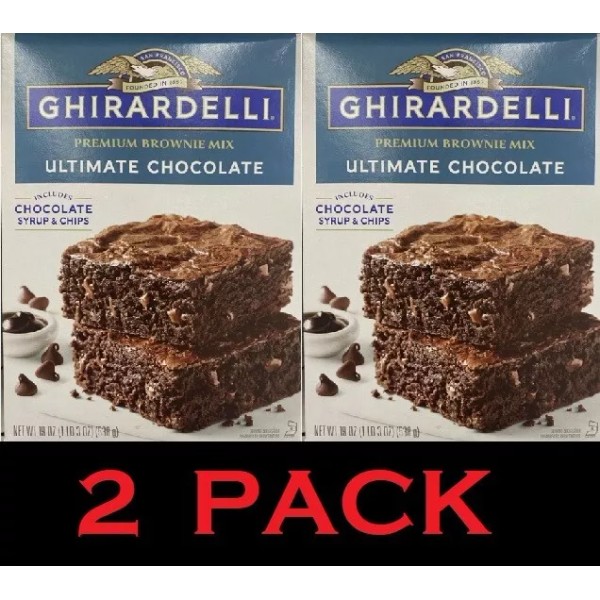 We have a listing for  ( 2 )  Boxes of Ghirardelli PREMIUM Ultimate Chocolate Chips Syrup BROWNIE Mix 19 oz, Per Box.