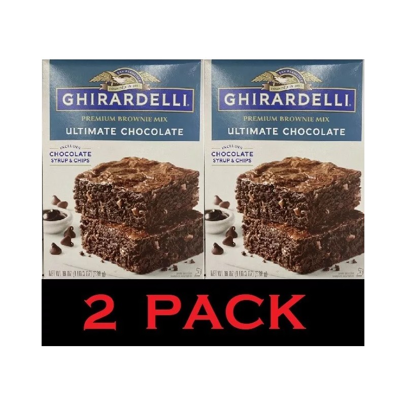Ghirardelli PREMIUM Ultimate Chocolate Chips Syrup BROWNIE Mix 19 oz Box  2 PACK