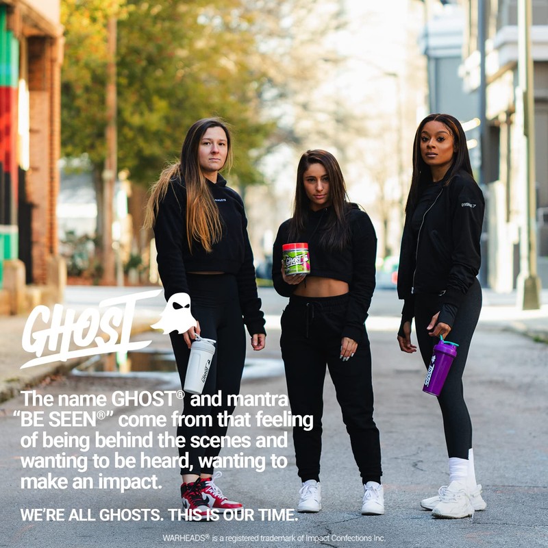 - BE SEEN: As a premium active lifestyle brand, GHOST is powering and empowering users to BE SEEN beyond the walls of the gym. The name GHOST and mantra “BE SEEN” come from that feeling of being behind the scenes and wanting to be heard, waiting to make an impact. We’re all ghosts. This is our time.