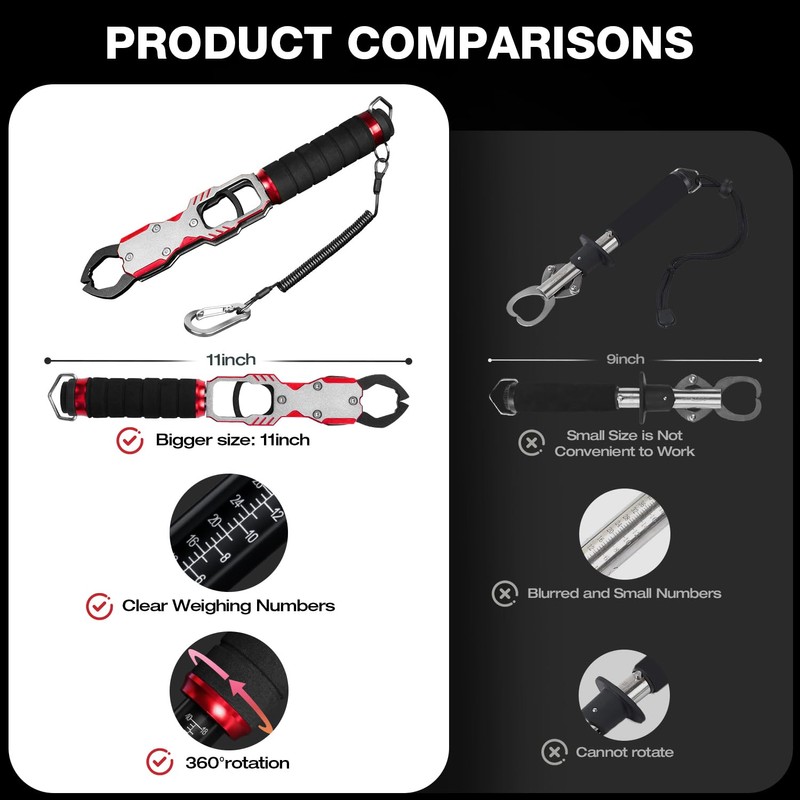 - Premium Anti-Corrosive Fishing Gripper:Crafted with lightweight Robust Construction aluminum alloy, fish grabber maintains long-lasting performance in both freshwater and saltwater without corrosion.