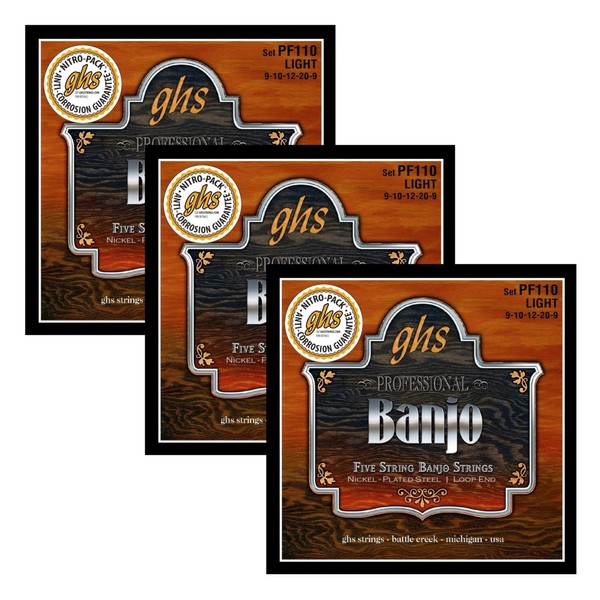 GHS Strings BANJO - Nickel Plated String Set - 5-String - PF110 - Light, 3 Sets of PF110