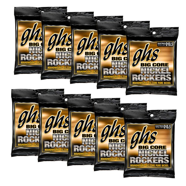 GHS Strings BCL-10 PACK - Big Core Nickel Rockers, Pure Nickel Electric Guitar Strings, Light (10 1/2-48), Pack of 10