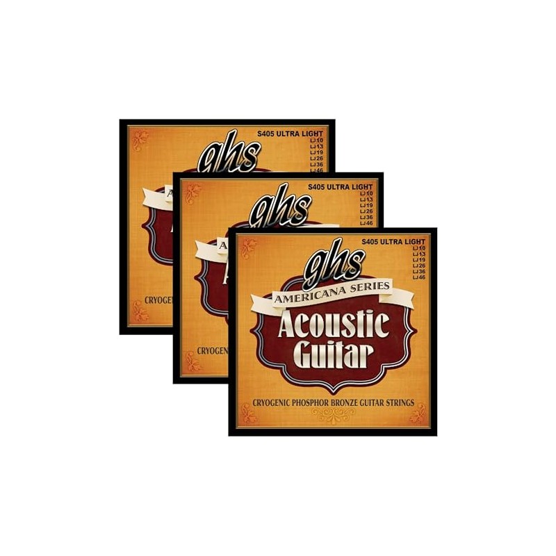 GHS Strings S405 Americana Phosphor Bronze Acoustic Strings, Ultra Light, 10-46, Pack of 3