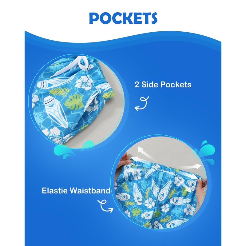 - 2 in 1 Design: Boys swim trunks with compression liner, provide extra coverage and protect your little boy’s privacy. The soft lining also reduces friction, ensuring safety and comfort during any water activity.