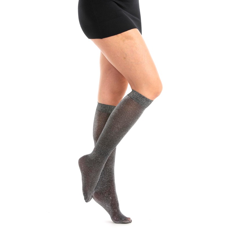 Gi&Gi Colourful knee socks for women, 3 pairs. Knee socks for women made of shiny glitter threads, 40 denier, black silver