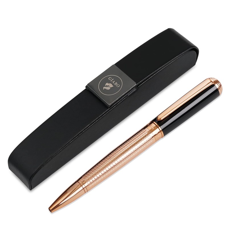 Gíabo Kasai Luxury Ballpoint Pen in Rose Gold, Ballpoint Pen with Engraving, Elegant Pen with Piano Lacquer and Non-Slip Structure