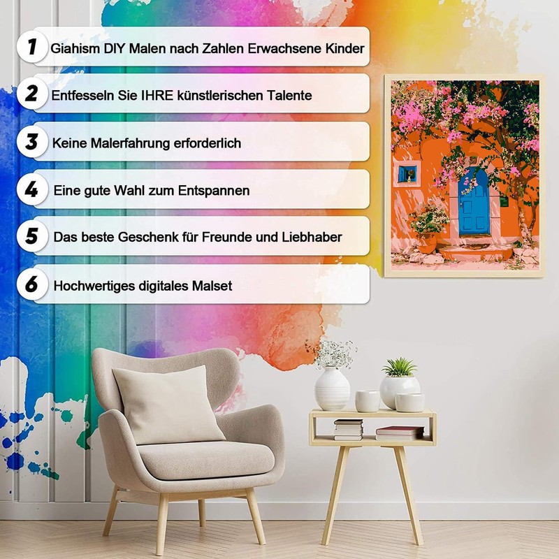 Giahism Paint by Numbers Adult Paint by Numbers with Brushes and Acrylic Paint, DIY Set Crafts Adults with Brushes and Acrylic Paints for Home Decor (Frameless, 30 x 40 cm)