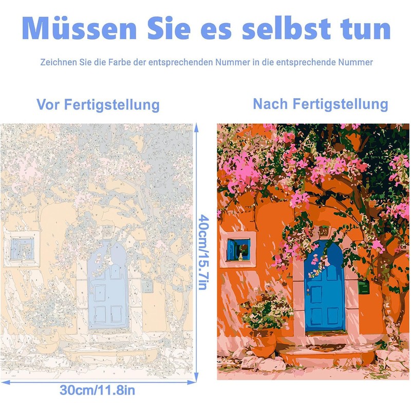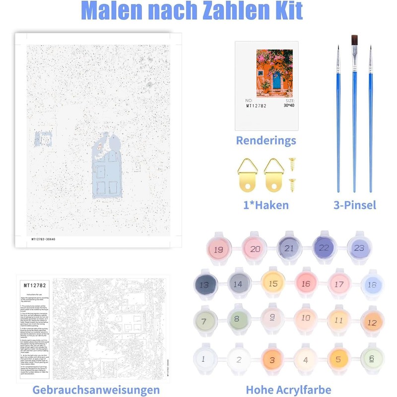 - Package includes: paint by numbers kits contains a 30 x 40 cm canvas (frameless), 3 nylon brushes, a complete set of acrylic paints, a reference sheet and an example oil painting
