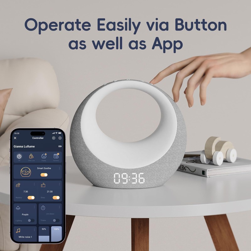Gianna Baby Sound Machine - Auto-Soothing, Customizable Recording, 26 Soothing Sounds, 8 Eye-Care Lights, APP-Controlled White Noise Machine, Rechargeable Sleep Trainer - Ideal for Nurseries, Bedrooms