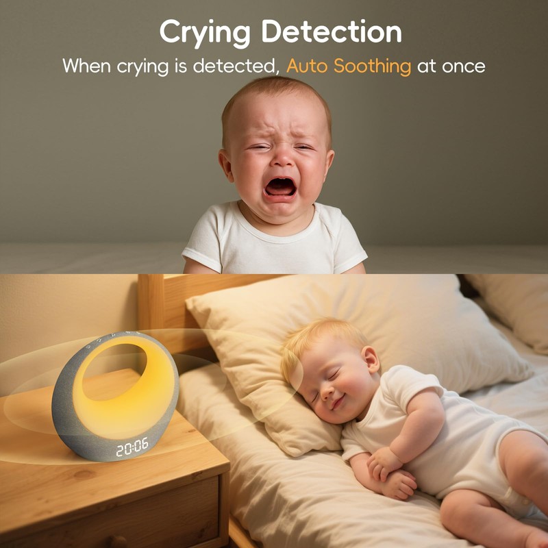 - Smart Soothing Sound Machine – Easy control via free APP, the light and sound can be customized remotely via your phone or manually with a simple touch. Also you can get real-time alerts via app when baby cry, whether you're sleeping or working. Adjust the baby sound monitor instantly from your phone without entering the nursery, help to reduce parent stress.