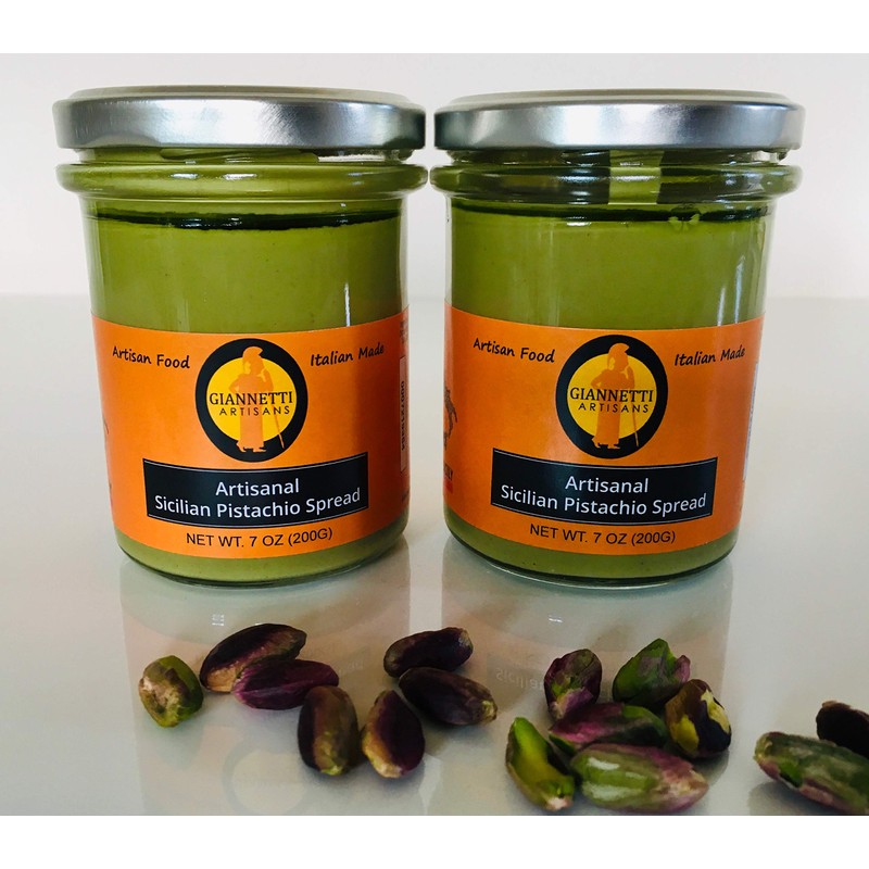 Giannetti Artisans Imported Sicilian Pistachio Spread with NO PALM OIL & 55% Sicilian Pistachio - 2 pack of 7.05 oz Jars