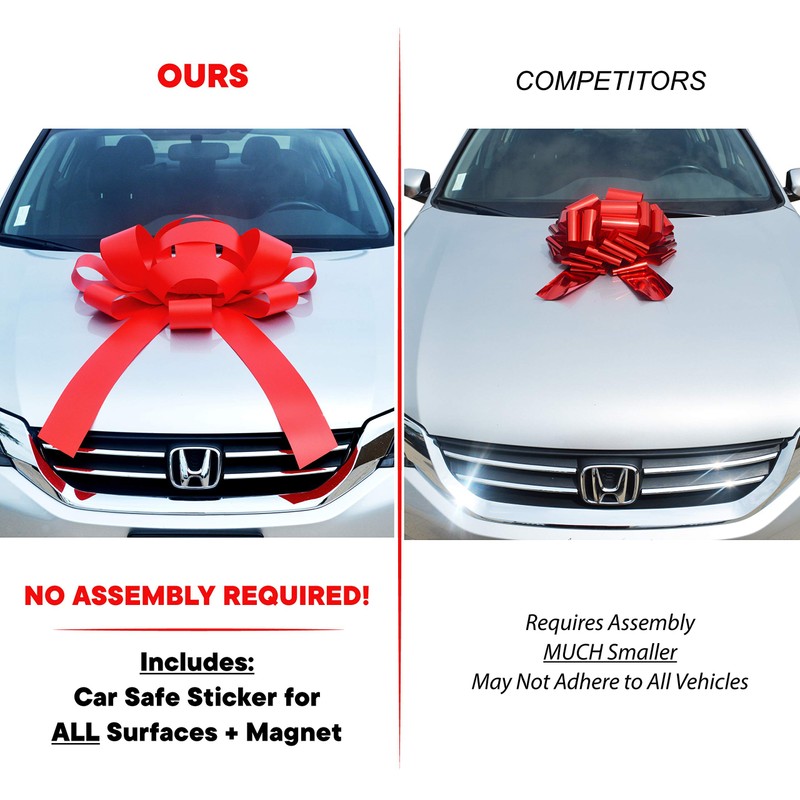 - Giant Car Bow - 30” wide with two 30” long X 4 ½” wide tails - No assembly required