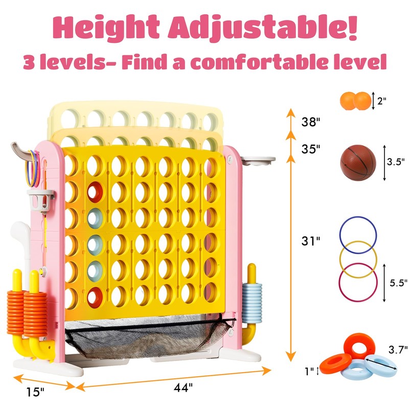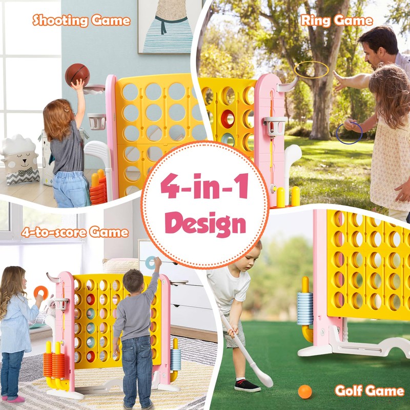 - 4-in-1 Fun for Endless Play: Experience endless entertainment with our versatile giant game set! This unique multi-functional unit combines the classic thrill of Jumbo 4-to-Score with an exciting Basketball Hoop, a challenging Golf Putting Game, and a lively Ring Toss. Our distinct golf feature ensures everyone finds their favorite way to play, creating unforgettable memories for all ages and interests.