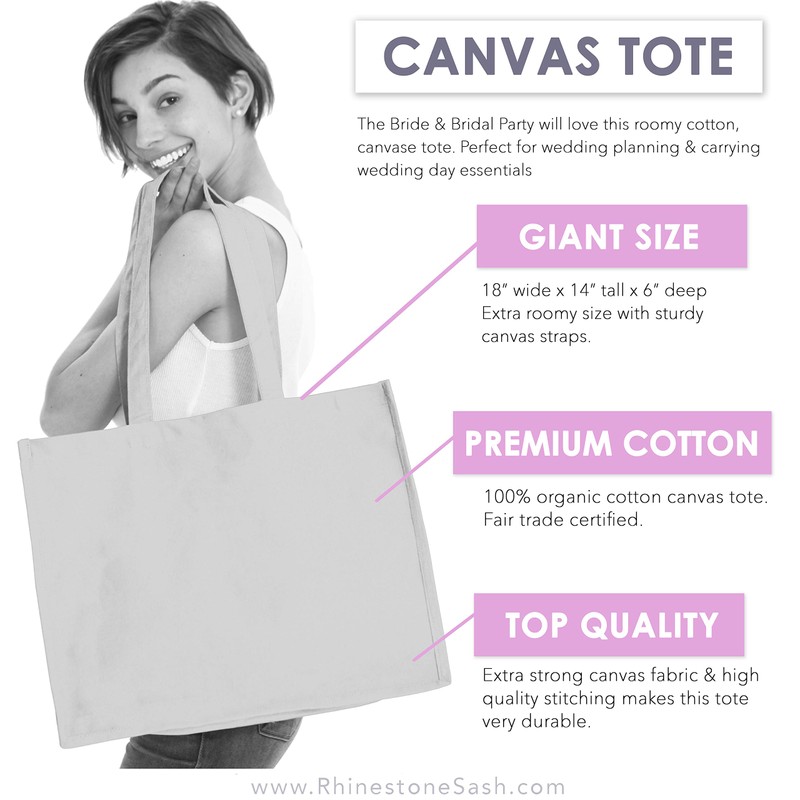 - PREMIUM HEAVYWEIGHT CANVAS TOTE! This tote is built to last, the Bride to Be can have confidence it will hold all her gear without the straps breaking.